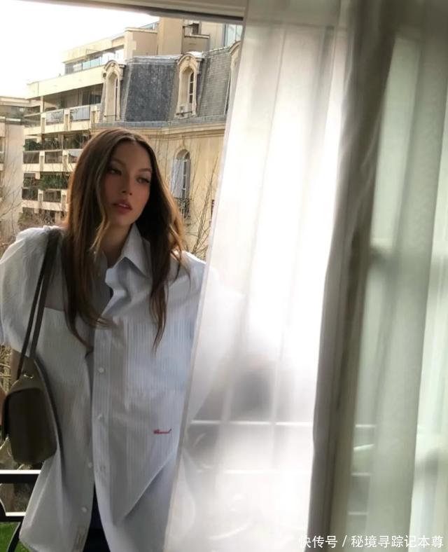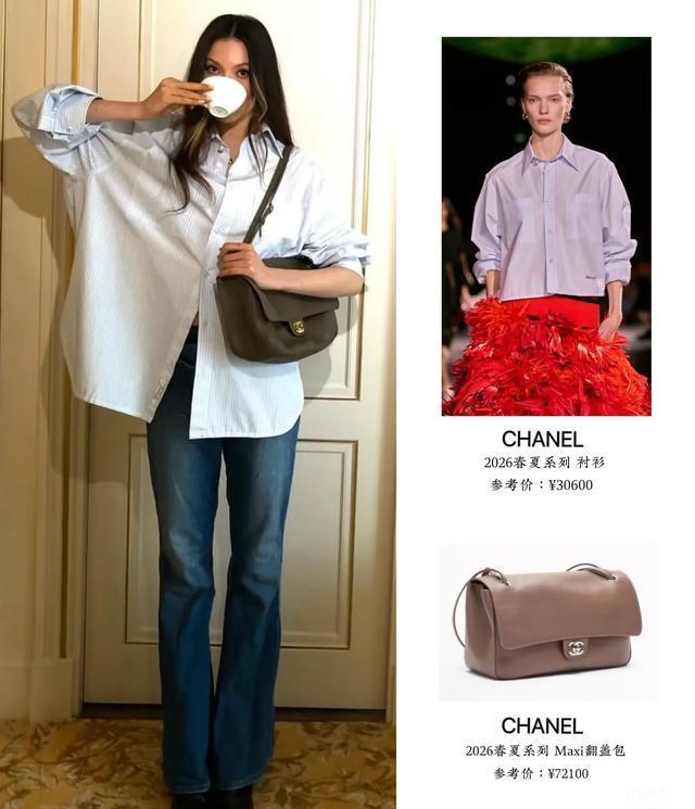 在结束了比赛之后,谷爱凌也没闲着,最近她又现身巴黎,观看Chanel大秀。她也是在社交平台分享了几张照片,晒出了在巴黎看秀的日常。 她在房间内,穿着一件浅蓝色休闲衬衫,搭配蓝色牛仔裤,手里拿着香奈儿的翻盖包包,对着镜头做出搞怪的姿势。 她披散着一头黑褐色的头发,对着镜子嘟起嘴巴,叉着腰开心的自拍。后面她又在阳台那里拍照,她扶着栏杆,窗帘挡住她一小半的身影,透着一丝朦胧的美感。 因为本身也是模特,再加上谷爱凌个子比较高气质也好,所以她不管怎么拍都是有一种拍时尚大片的既视感,而且还很有高级感,也难怪会成为各大时尚品牌的宠儿了。 而且这次巴黎看秀,为了迎接这位奥运冠军,Chanel还特地为她准备了印有五环的马卡龙,马卡龙也是三金三银,代表了她的六块奥运奖牌。就连旁边的巧克力点心都是一金两银,可见品牌方真的很用心。 谷爱凌更新照片后,她的穿搭也被扒出了同款,她身上的这件蓝色衬衫也是秀场款,是2026年的春夏系列,价值3W,背着的香奈儿包包更是价值7W,一身行头轻松10W+。 当然了,其实衣服看着都挺普通的,说是百元款也有人信,真的是全凭谷爱凌的气质撑起来的。